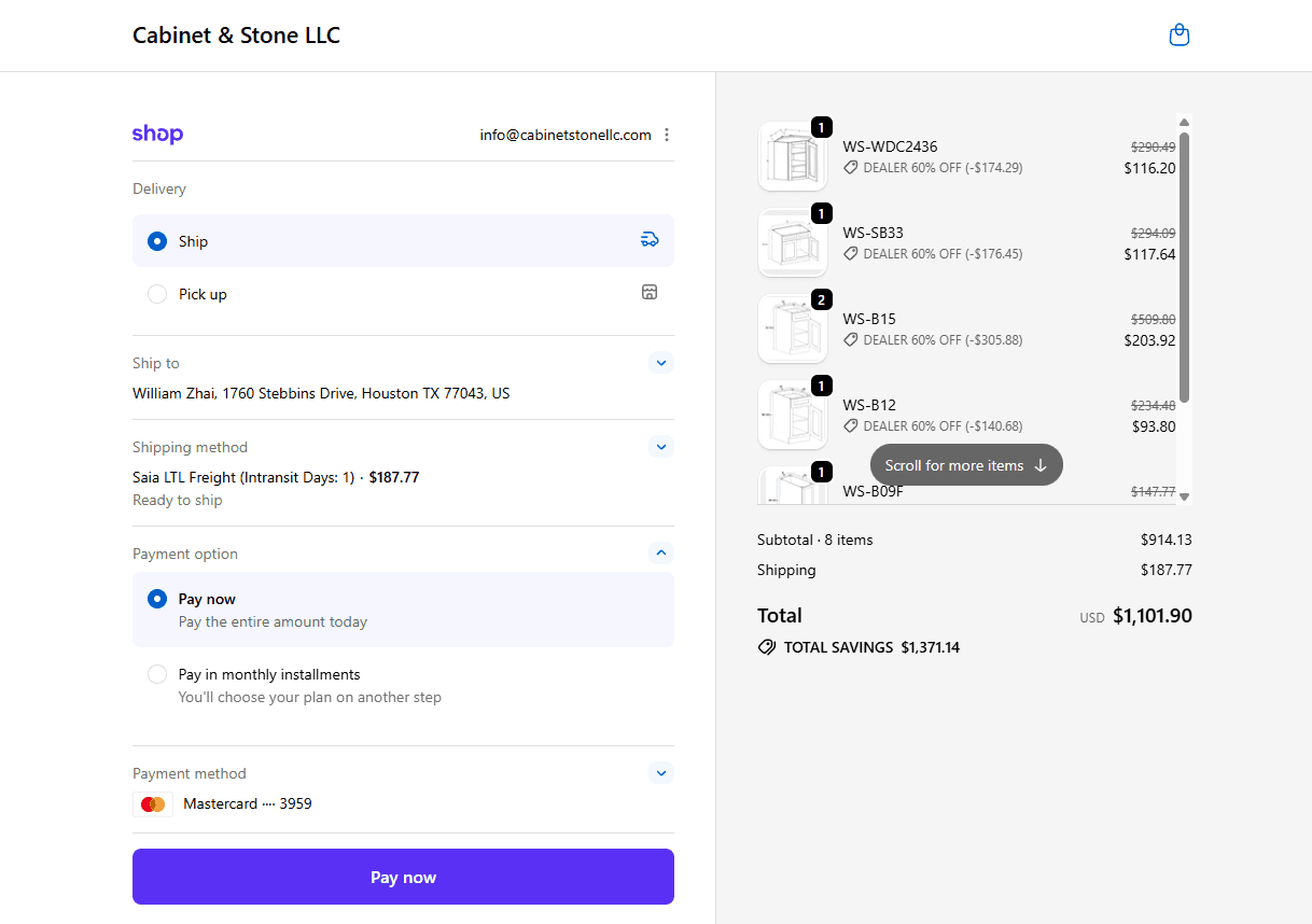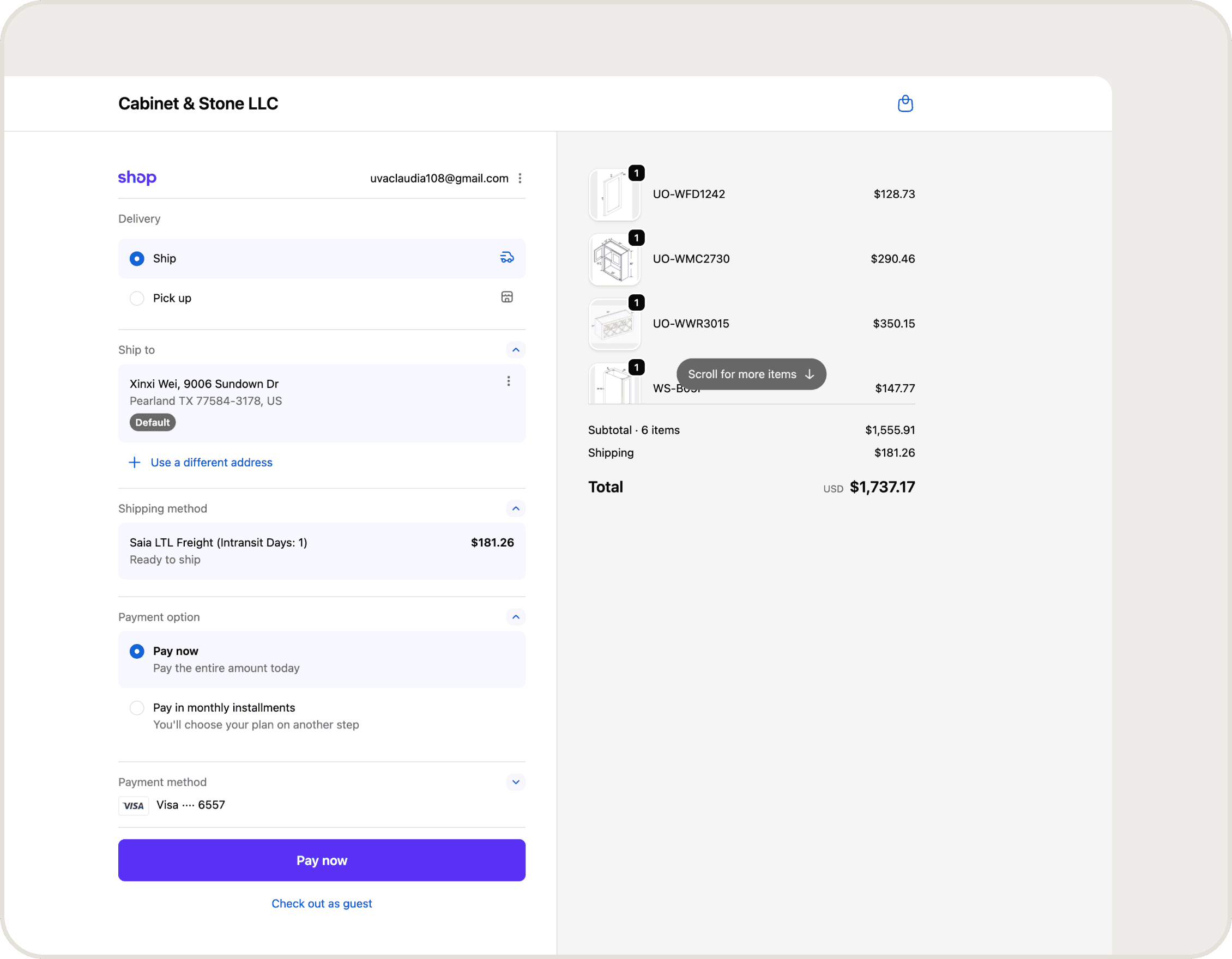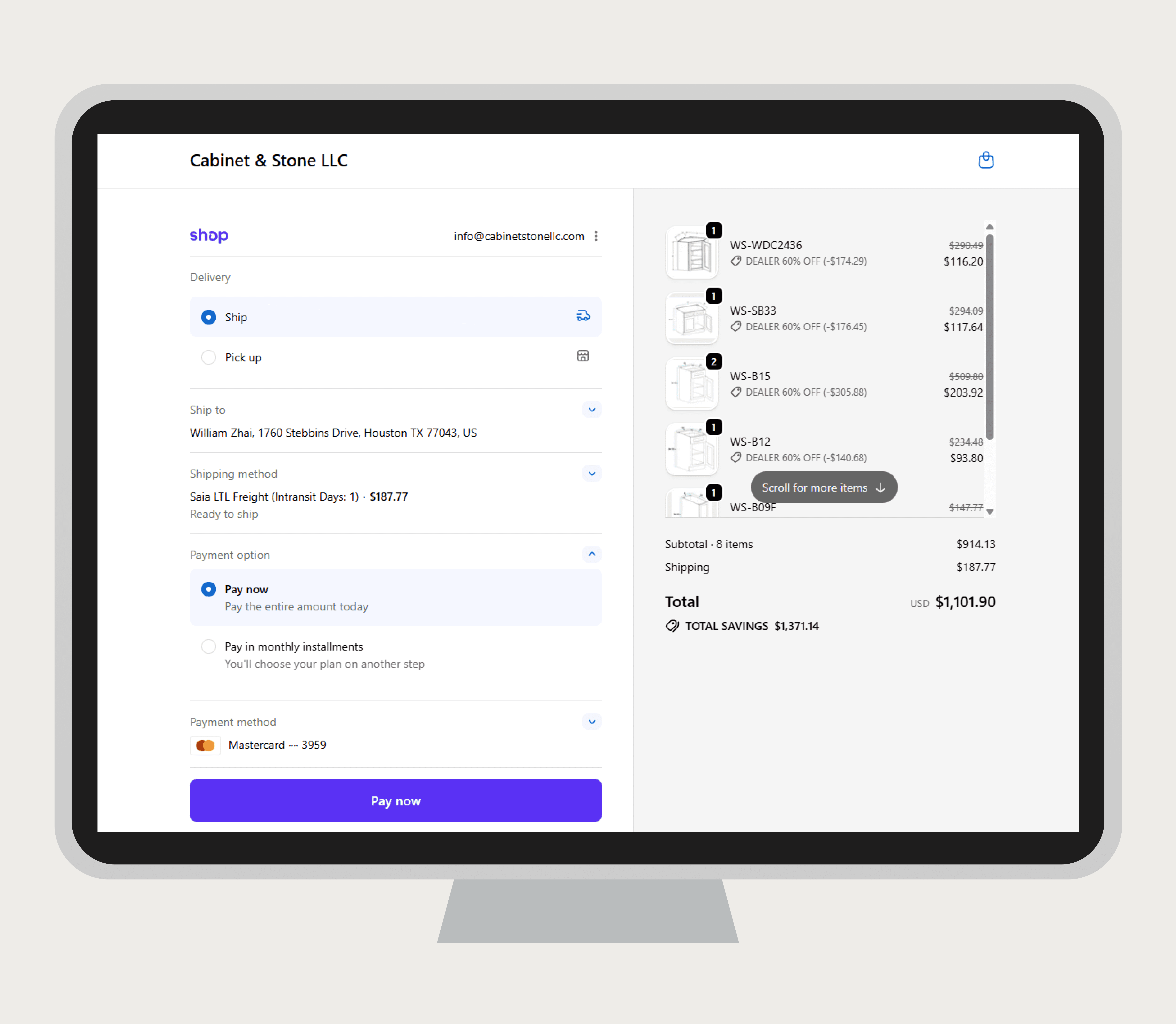 Cabinet & Stone previously relied on offline ordering and fragmented internal tools.As the business grew, the team needed a online ordering system that could support dealer-specific pricing, complex SKUs, and LTL freight.