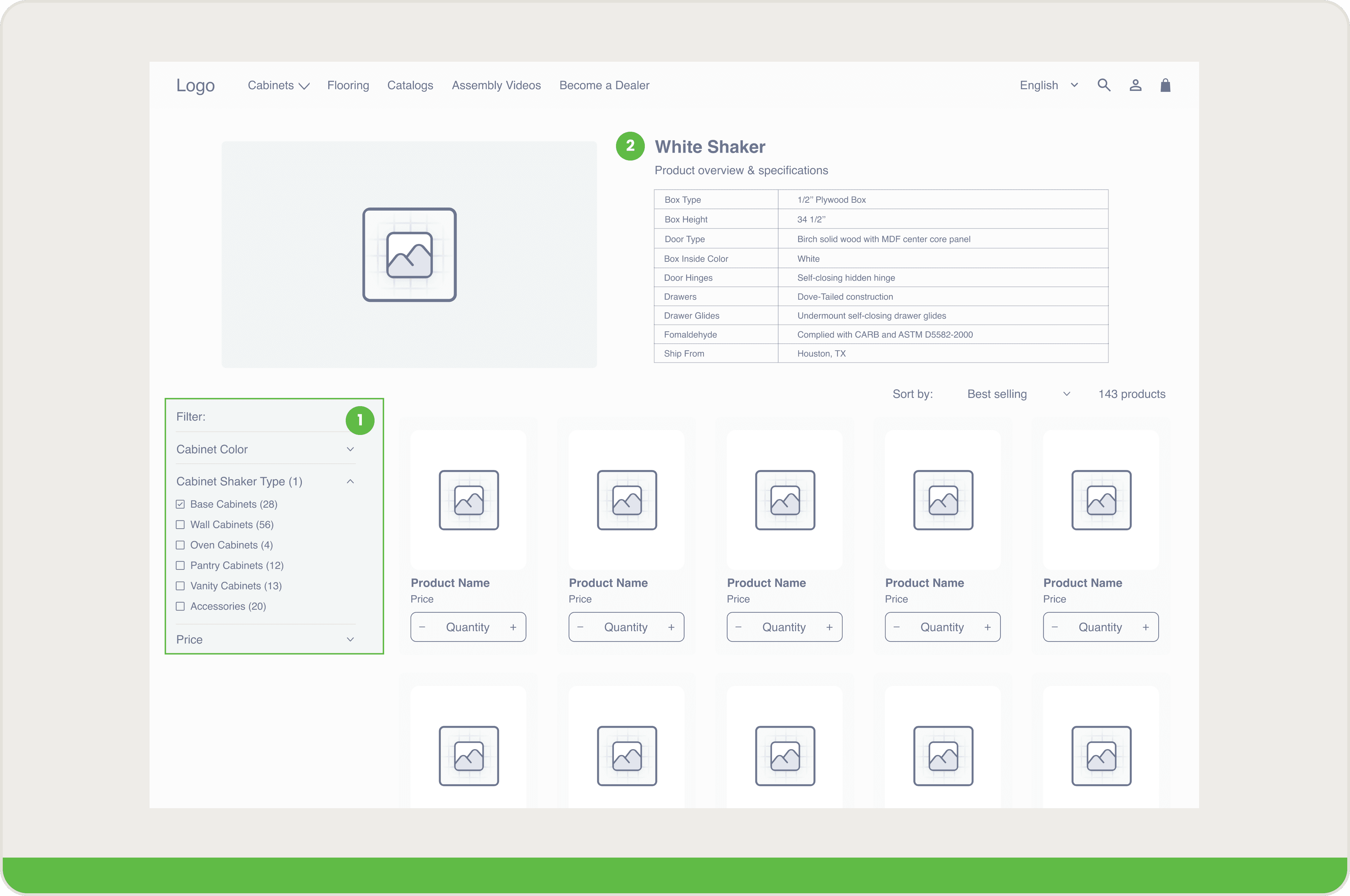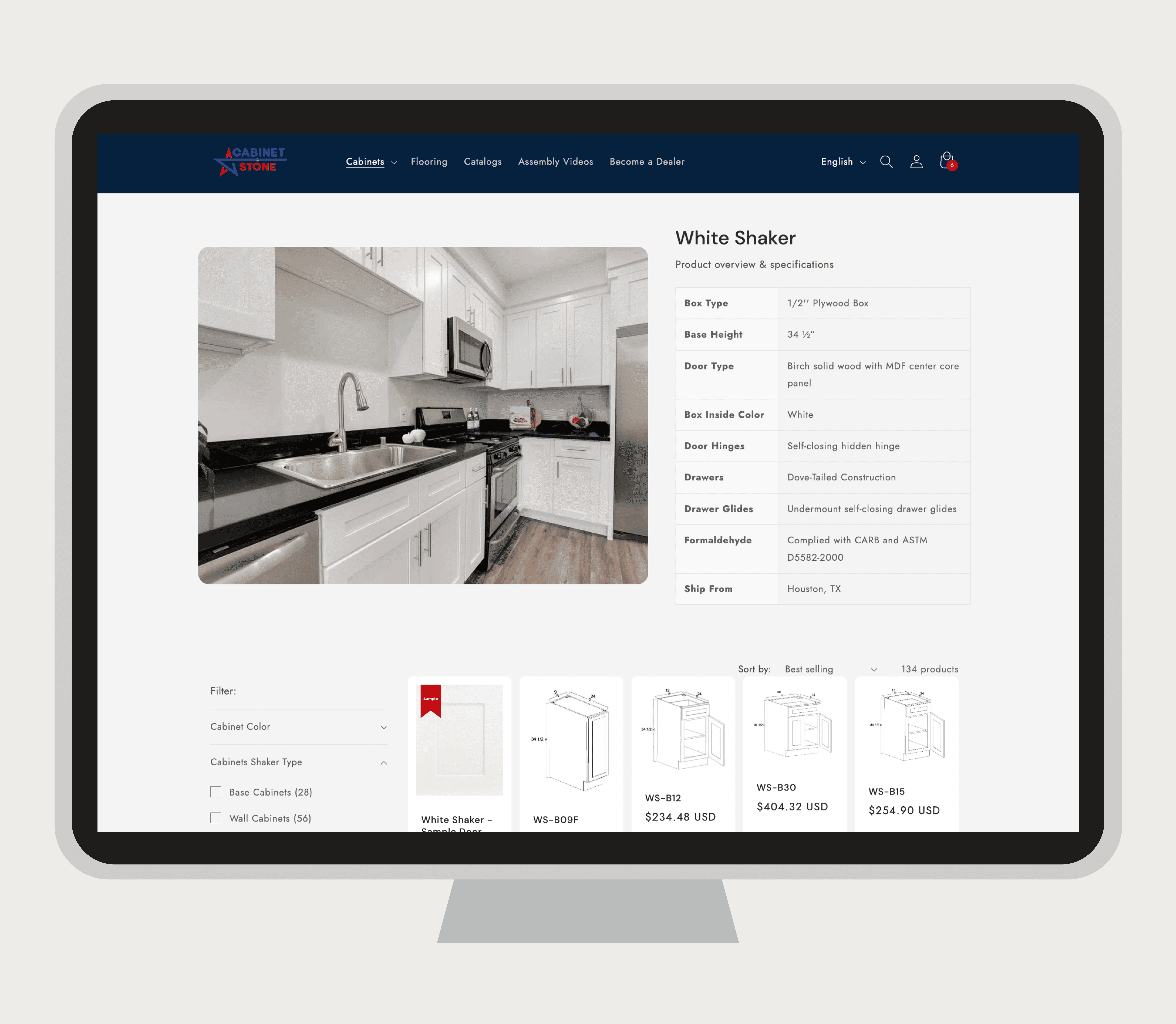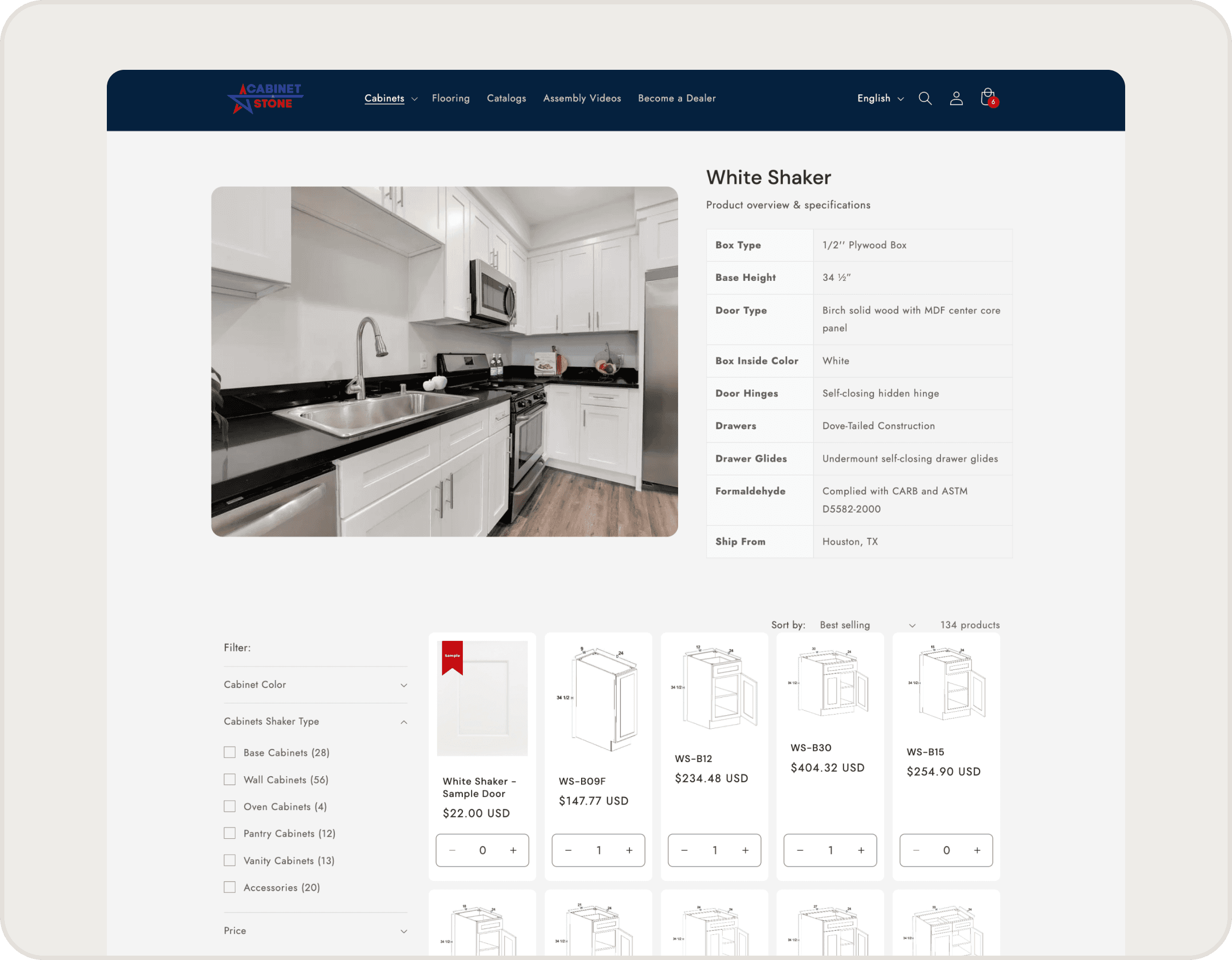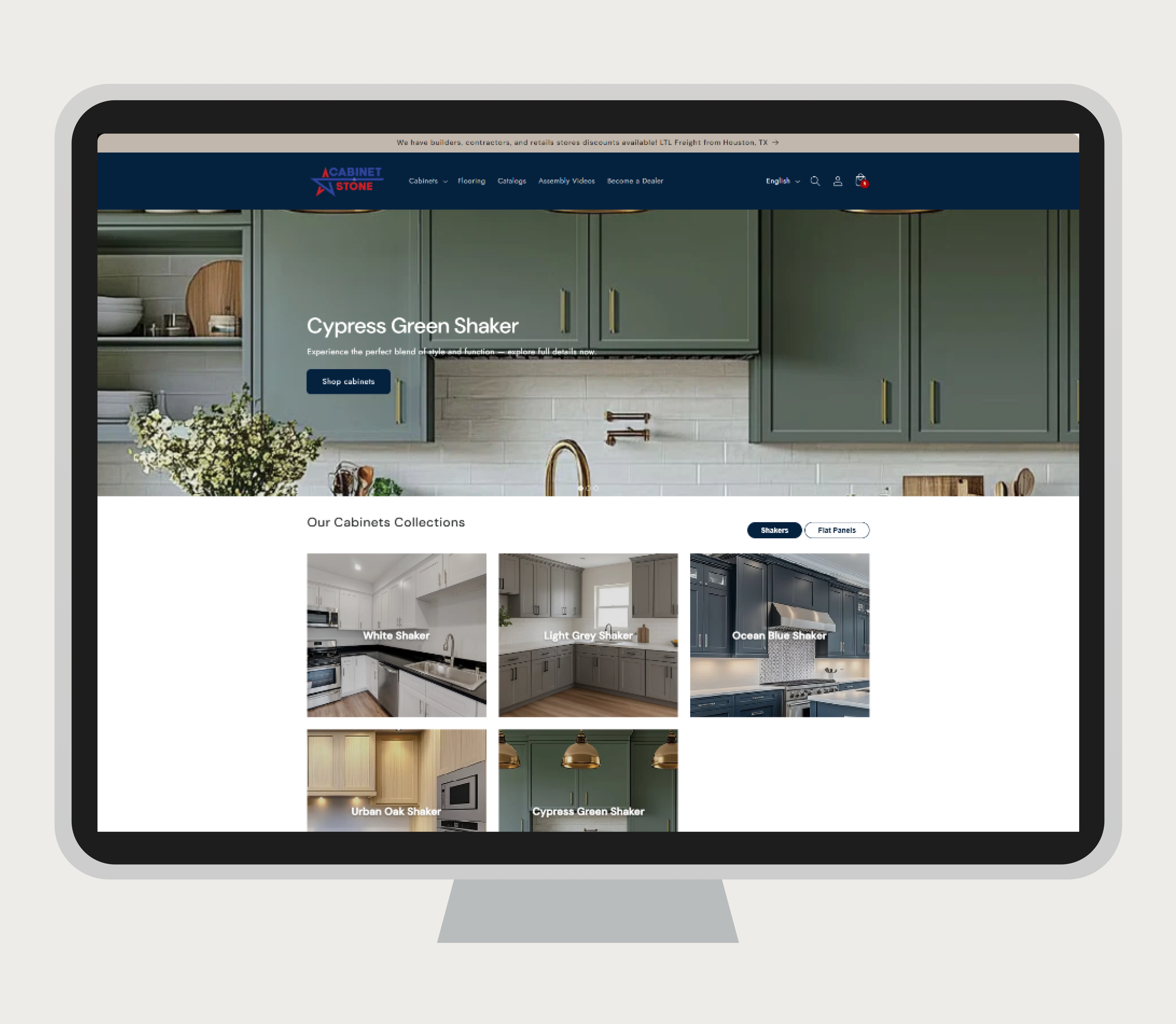 Cabinet & Stone is an early-stage B2B cabinet wholesaler with a strong ambition to move sales online. Freight-based pricing and limited engineering resources made it difficult to design a reliable end-to-end ordering experience, keeping the website informational and orders manual.