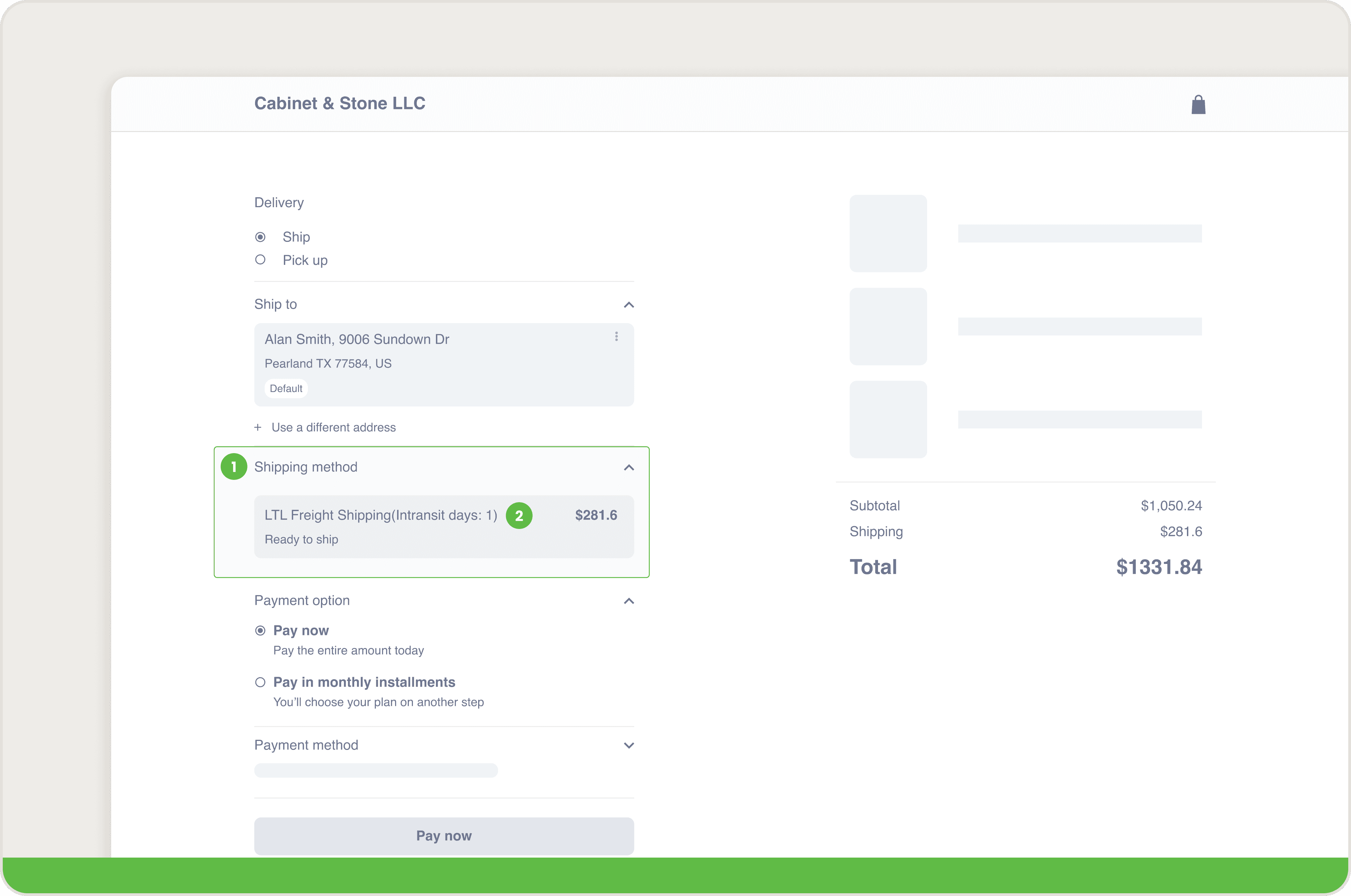 Defining dealer workflows and integrating freight logic for a cabinet wholesaler